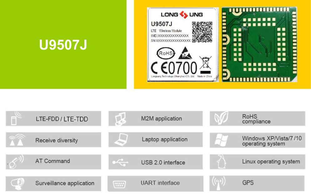 U9507J is a wireless module which is designed for the global market. It is a consumptive product; It can