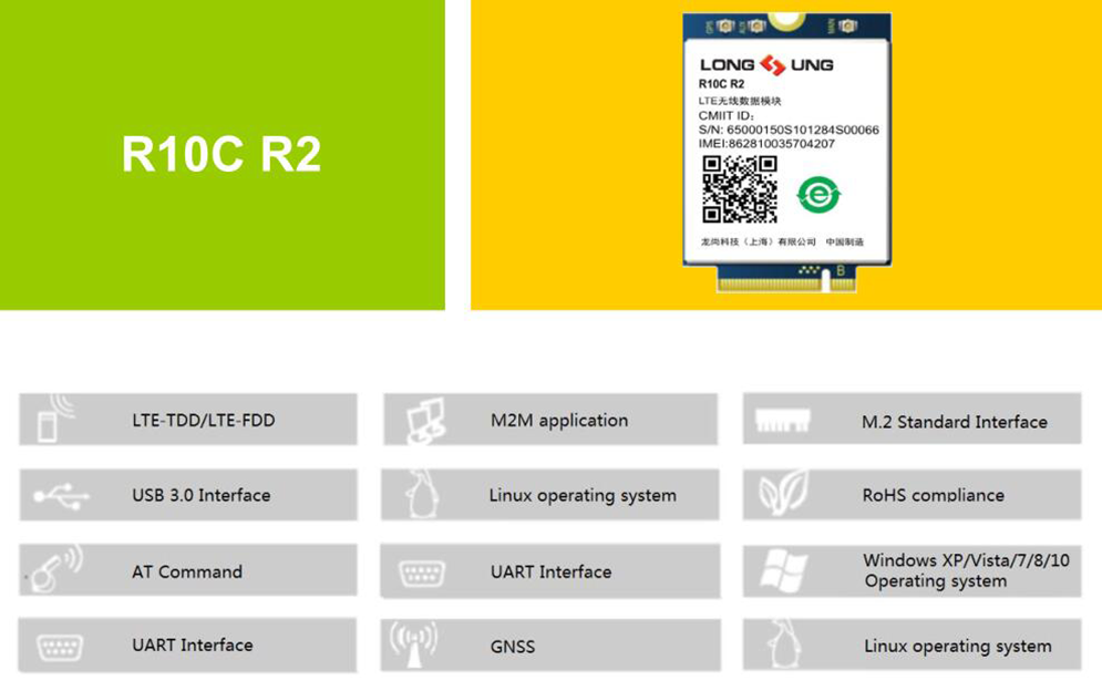 The R10C R2 is a new generation of Longsung LTE wireless module, supports LTE CAT6 up to